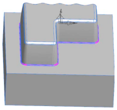 此示例零件使用笔式清角策略来切削底部圆倒角: