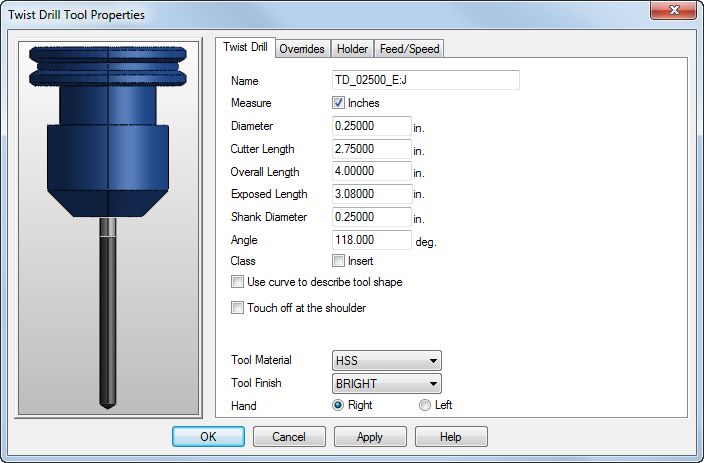 测量 - 指示用于报告刀具尺寸的单位。选择“英寸”可获得英寸单位,将其取消选中可获得毫米。