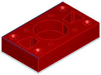 下图显示了已识别和抑制了孔的实体零件。实体中的孔已填充,但已识别的孔特征可以视为圆: