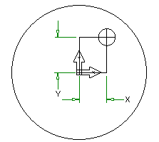 - 极坐标 — 特征将对齐,以便其深度与设置的 -Z 轴方向平行。通过指定“半径”和“角度”来定位特征。