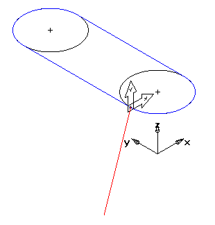 扫掠曲线必须连接到曲线起点的轴曲线。此图显示了一个正确定义的横截面曲线示例。用户坐标系在轴曲线的起点处创建。然后,横截面曲线定义为与此用户坐标系相关。请注意,设置轴未更改。用户坐标系仅用于设计坐标系。