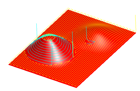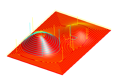 标准 Z 轴层精加工刀具路径可创建具有恒定 Z 高度的路径,如下图所示。刀具将沿 Z 轴层之间的曲面退刀或进给。