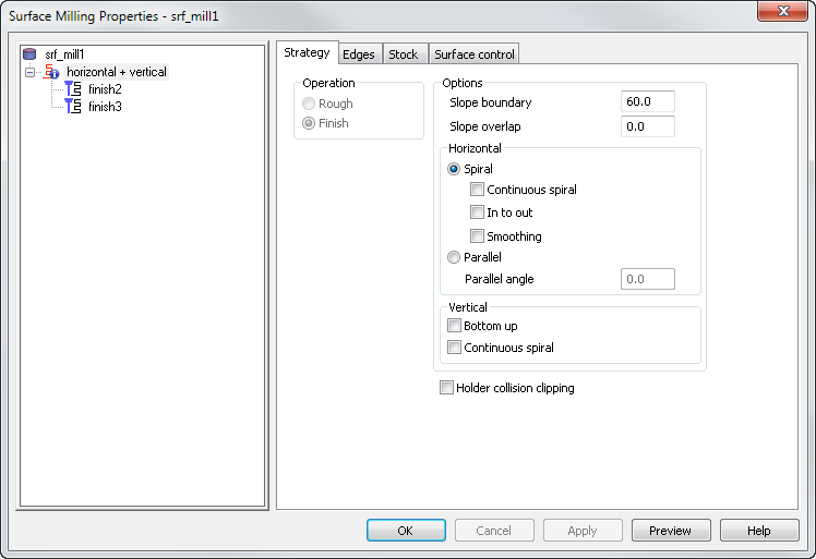 “斜坡边界”- 这是分割水平和垂直区域的角度。曲面上斜坡小于此角度的部分使用平行刀具路径加工,而更陡的斜坡则按 Z 轴层加工。