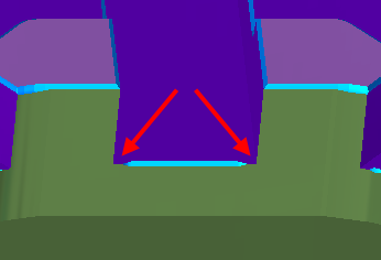 FeatureCAM 使用 3D 平倒角去毛刺边缘,但不会过切相邻的边缘,例如: