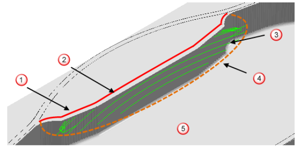 如果延伸截面不符合条件,FeatureCAM 不会延伸平面区域,而不是使用斜向移动来接近刀具路径。