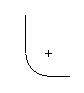 “2D 圆倒角”可在其他已有几何形体之间创建圆形拐角,并对着圆倒角的终点修剪已有几何形体。左图显示了原始线。右图显示了在插入圆倒角之后的这些线。请注意,已对着圆倒角修剪了直线。