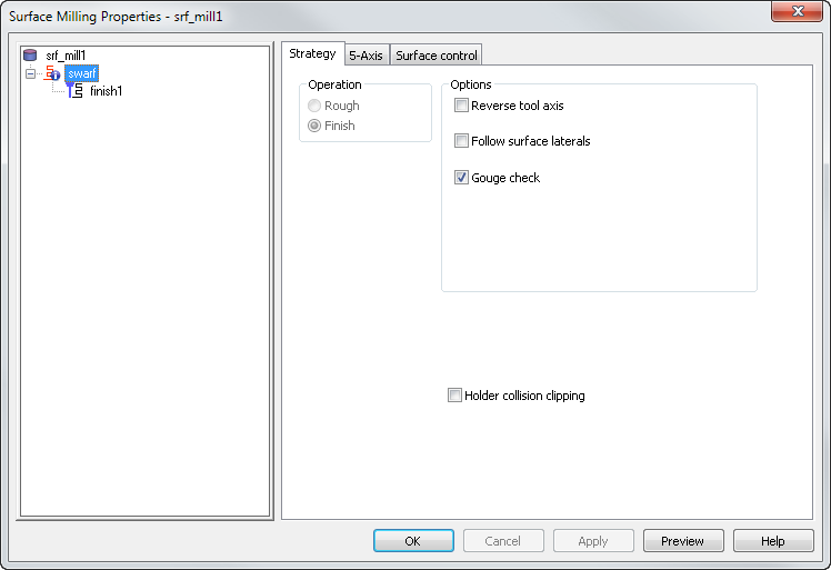 夹持碰撞避让 — 避让夹持或刀柄与零件曲面、阻止曲面或未加工毛坯发生碰撞的刀具路径。选择该选项后,在操作的“铣削”选项卡上将显示“夹持间隙”和“刀柄间隙”属性。