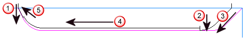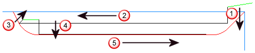 沿左侧底部半径向上切削。此移动按偏差量偏移。