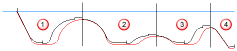 如果车削特征包含多个槽型腔,每个型腔都采用这种方式切削,这些型腔按从左到右的顺序排列如下: