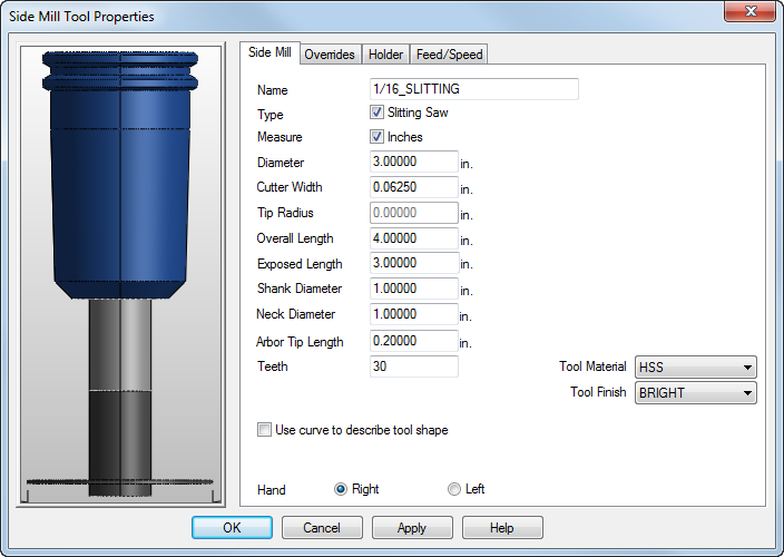 测量 - 指示用于报告刀具尺寸的单位。选择“英寸”可获得英寸单位,将其取消选中可获得毫米。