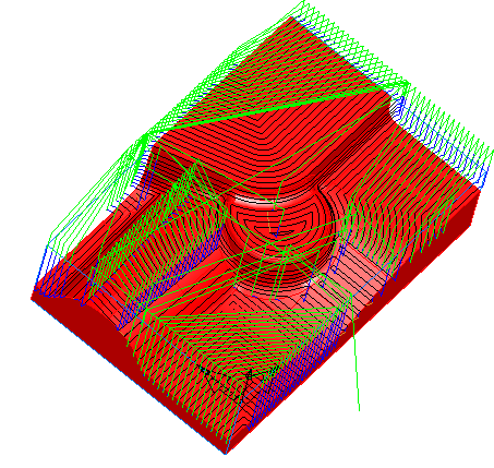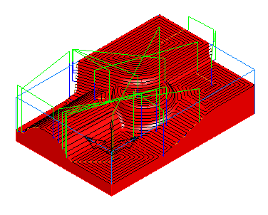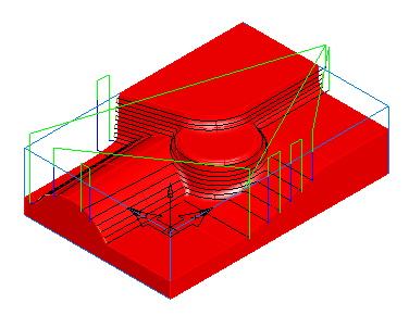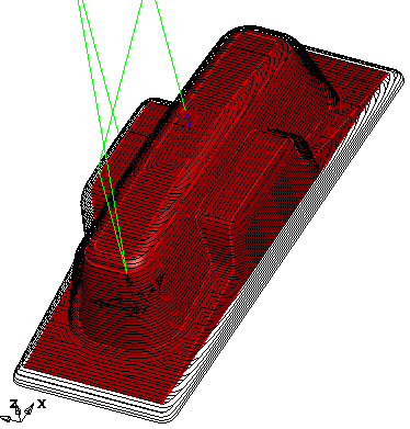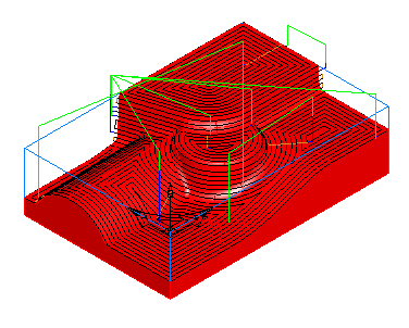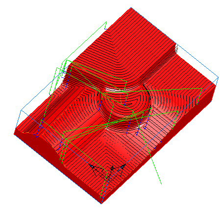 在未选择“删除浅滩等高切面”的情况下,将在每个切面之间插入刀具路径。这将导致生成相对平坦的浅滩区域。