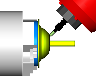 如果使用 45 度的固定 B 角刀轴,刀具会倾斜,从而避免任何碰撞: