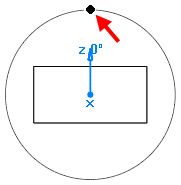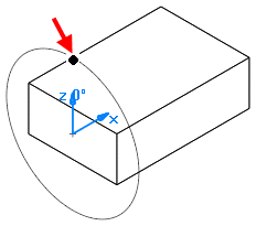 从毛坯轴原点到换刀位置的距离必须足够长,以便刀具在旋转时可清除零件。下图(由一个箭头标记了换刀位置)显示了通过绕毛坯轴扫掠换刀位置形成的圆。请注意,该圆将清除整个零件。