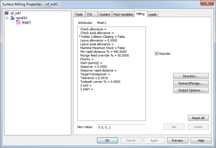 公差 - 该属性用于控制刀具路径跟随曲面的精确程度。如果零件显示为有镶嵌面,请将公差设置为较小的值。
