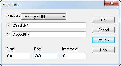 在“函数”列表中,选择“x=F(t), y=G(t)”(该函数用于对参数化函数建模)。