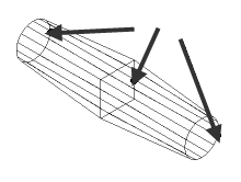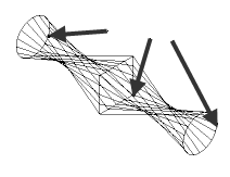 为具有闭合横截面的放样曲面或实体创建直纹面时,请确保曲线的开始点在正确的位置。以下示例显示的是通过开始点错位(标有箭头)的横截面创建了直纹面: