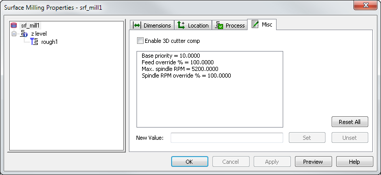 启用此选项可使用 3D 刀具补偿。对于 3D 曲面铣削特征,3D 刀具补偿用于在接触点的方向上补偿刀具半径。该补偿并非简单的右补偿或左补偿。您可以使用“曲面铣削属性”对话框的“辅助”选项卡编辑曲面铣削特征的加工选项。