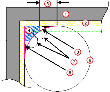 扩展区域 - 输入要将残料区域扩展的距离(沿曲面测量)。与“检测材料厚于”值一起使用以将要加工的区域减小到细节(例如,拐角),然后稍微偏移这些区域以确保加工所有细节(例如,在拐角上)。