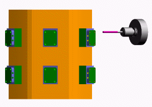 接下来,使用立碑向导打开 FeatureCAM 零件,并将零件放置在立碑上。您可以切削单个零件的多个副本,也可以在立碑上混合不同的零件。您可以自动对操作排序,以使所有设置间的换刀最少,或在旋转之前完全切削每个设置。