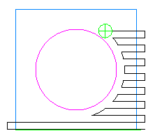 例如,对于此凸台特征,刀具路径先完成凸台右侧的区域,然后再移到左侧的区域。
