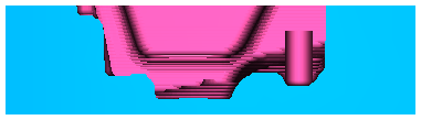 对该零件使用 Z 轴层粗加工后,在取消选择了“删除不安全区域”的情况下 Z 轴层半精加工 3D 仿真的前剖视图如下所示: