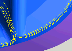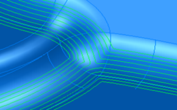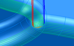 拐角再加工用于清理非切向曲面之间出现的拐角。每个拐角边缘都称为追踪线。通过使用策略页面上的选项,您可以相对于追踪线以各个方向进行切削。