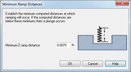 您可以使用“最小斜向距离”对话框指定在其下方进行下切的最小 Z 轴斜向距离。