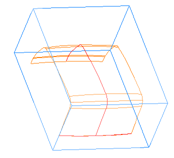 扬声器外壳使用扫掠曲面在一个曲面中定义顶部、背部和底部侧边。源曲线是直径较大的圆段(1000 英寸)和穿过三条侧边(在段最大直径处)的中心线。为此曲面关闭了平移扫掠开关,以在整个扫掠中相对于轴的同一方向保留弯曲。稍微弯曲的底部以后通过修改曲面操作展平。