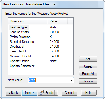 特征宽度 - 输入或拾取型腔网络的宽度。单击“设置”以保存。
