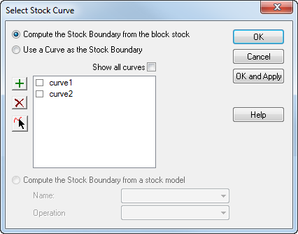 您可以使用“选择毛坯曲线”对话框指定曲线来定义毛坯的形状。