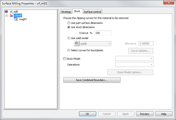 保存组合边界 - 单击此按钮可显示并保存操作的边界。边界是边缘边界、毛坯曲线边界和倾角限界的组合。这可能需要一些时间来计算,但会随操作计算并保存,即仅计算一次。