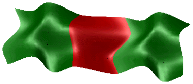 下图显示了两个曲面调配的示例。对于这种调配,必须提供每个曲面上的曲线,才能创建此曲面。