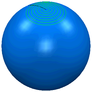 如果选择“模式”为“删除刀具路径”,会将球加工到以下程度: