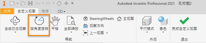 此时将打开“自定义视图”窗口。在“自定义视图”选项卡上,单击“按角度旋转”。