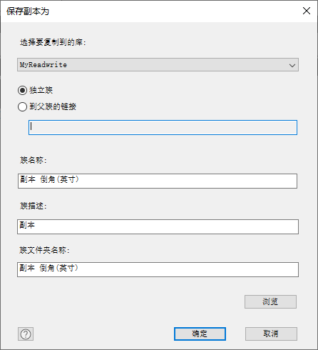 选择读/写库作为要复制到的库,选择“独立族”,根据需要编辑名称和描述字段,然后单击“确定”。