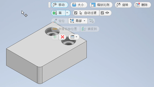 使用“直接编辑”可以更改在 Inventor 中创建的实体,还可以更改导入的无历史记录的实体模型。