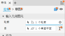 通常情况下,特性面板开始于特征定义模式。可以单击面包屑导航文本以在“特征”和“草图”之间来回切换环境。选定环境的面包屑导航文本以蓝色显示。