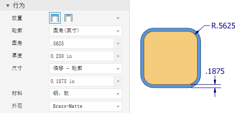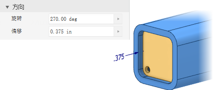 - 设置“旋转”值。例如,将端盖特征(例如排水孔)定位到正确的位置。
