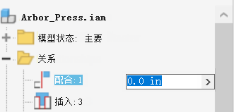关系:显示部件中所有联接和约束的序列列表。可以通过选择“关系”文件夹中的项目快速更改或测量约束几何图元。必须启用“在浏览器中编辑值”浏览器菜单选项。