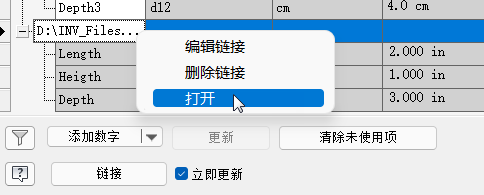 要打开链接的文件,请在“参数”对话框中的文件名路径上单击鼠标右键,然后单击“打开”。