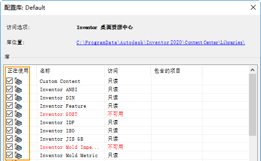 在本地计算机上直接安装在“Autodesk Inventor 资源中心库”部分中选择的资源中心库,将其作为桌面资源中心。