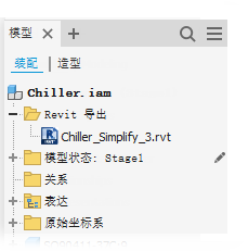 单击“确定”以根据指定的条件创建 RVT 模型。Inventor 模型浏览器中填充有一个名为“Revit 导出”的文件夹。该文件夹中填充有一个链接到导出文件的节点。