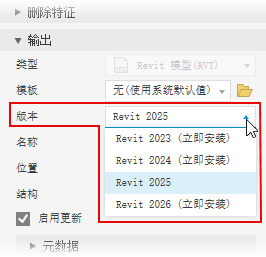 版本:选择要输出到的 Revit 版本(2023 及更高版本)。