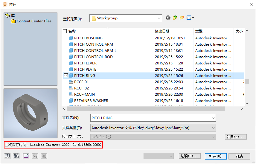 浏览到更高版本的零件文件 (.ipt) 并选择该文件以装入。上次保存该文件的 Inventor 版本将会显示。