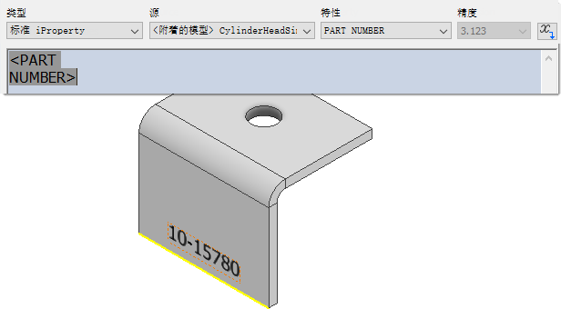 您可以使用草图文本中的 iProperty 值来创建与 iProperty 值关联的标记特征。