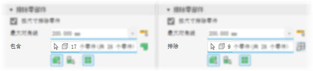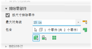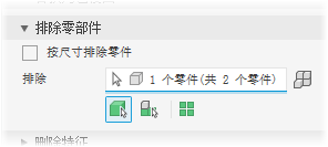 选择“按尺寸排除零件”选项。