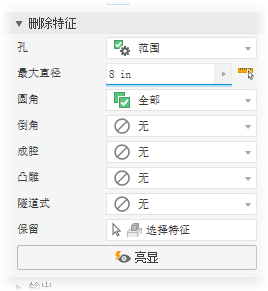“亮显”可将颜色应用于要删除的特征。