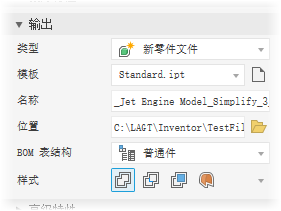 新零件文件:基于选定的模板输出 Inventor 零件。