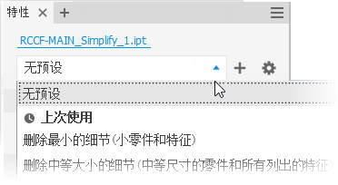 “简化”。系统将显示“简化”特性面板。
