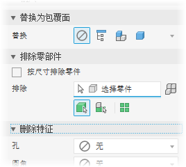 替换:输出一个简化的 Inventor 零件,该零件将填充替换模型状态。